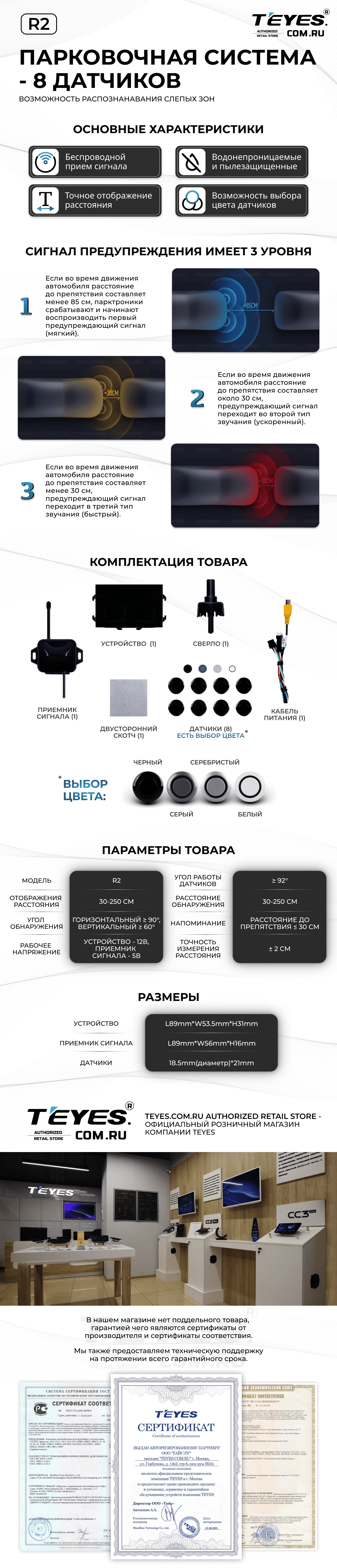 Передние и задние парктроники Teyes R2 для CC3 / CC2 Plus / SPRO Plus / TPRO2 (Серебристые) 8-датчиков - купить всего за 19 900 руб. в интернет-магазине в Тюмени Teyes.com.ru. ✓ Самый лучший выбор мультимедиа ✓ Лучшая замена штатному ГУ ✓ Тел. +7 (800) 775-31-74