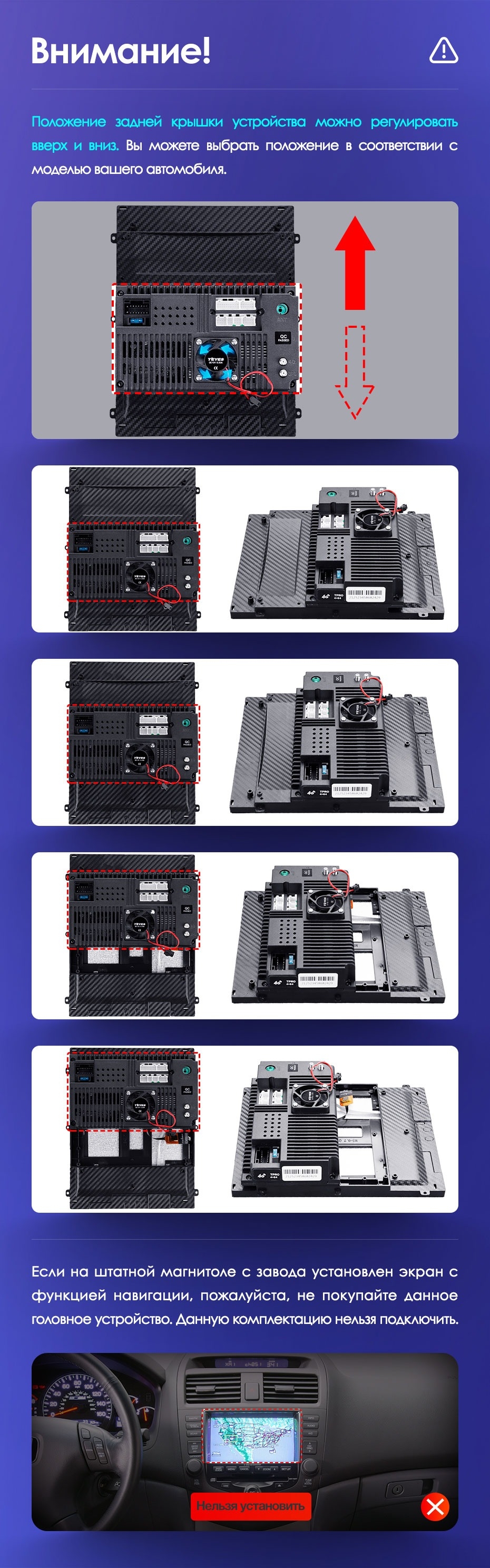 Вертикальная установка магнитолы закрывается специальной рамкой под определённый автомобиль. Утончённый, лаконичный дизайн Teyes TPRO 2 подойдёт под любую премиальную обшивку салона. Большой выбор цветовых решений интерфейса позволяет создавать индивидуальное оформление, чтобы мерцания и анимации на мониторе не отвлекали от езды. Teyes TPRO 2 - это симбиоз передовых технологий, созданный для вашего комфорта и безопасности.