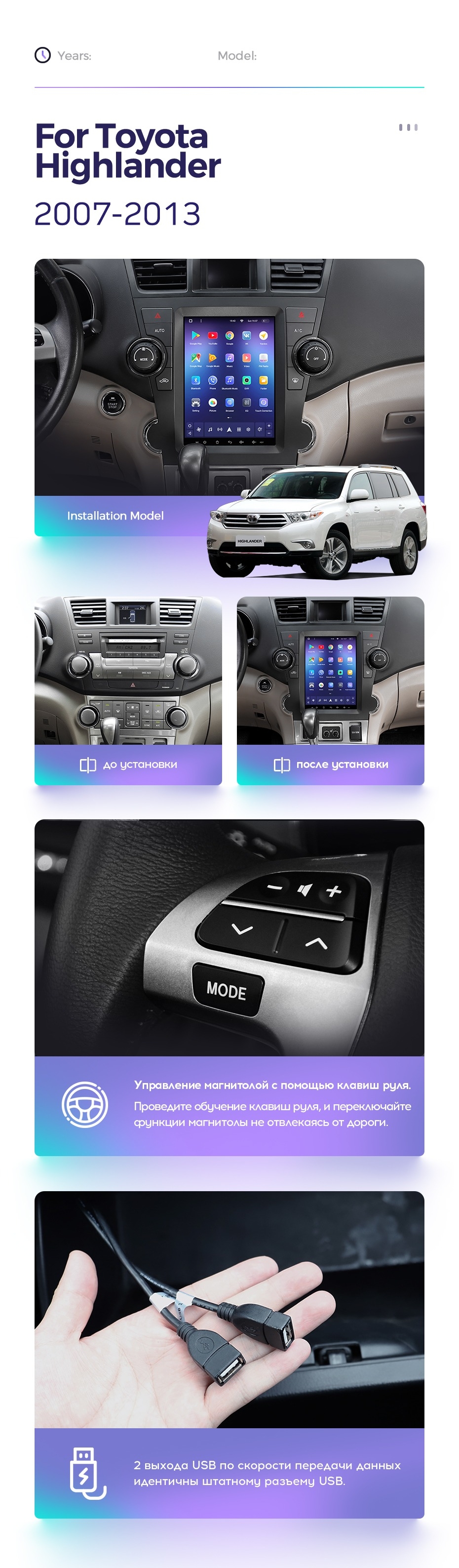 Штатная магнитола Tesla style Teyes TPRO 2 4/64 Toyota Highlander 2 XU40 (2007-2013) - купить всего за 41 900 руб. в интернет-магазине в Тюмени Teyes.com.ru. ✓ Самый лучший выбор мультимедиа ✓ Лучшая замена штатному ГУ ✓ Тел. +7 (800) 775-31-74
