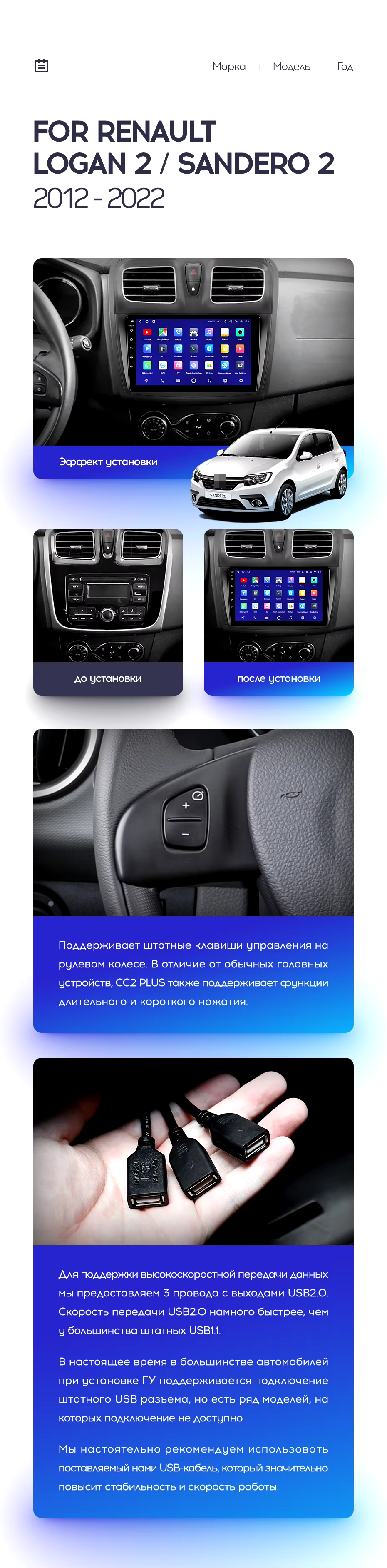 Штатная магнитола Teyes CC2 Plus 4/32 Renault Logan 2 (2012-2022) F2 - купить всего за 35 000 руб. в интернет-магазине в Тюмени Teyes.com.ru. ✓ Самый лучший выбор мультимедиа ✓ Лучшая замена штатному ГУ ✓ Тел. +7 (800) 775-31-74