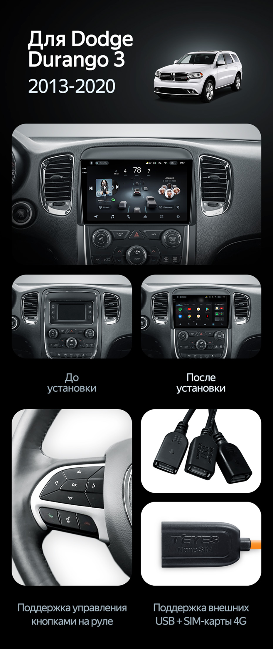 Штатная магнитола Teyes CC3 2K 360 6/128 Dodge Durango 3 (2013-2020) - купить всего за 57 500 руб. в интернет-магазине в Тюмени Teyes.com.ru. ✓ Самый лучший выбор мультимедиа ✓ Лучшая замена штатному ГУ ✓ Тел. +7 (800) 775-31-74