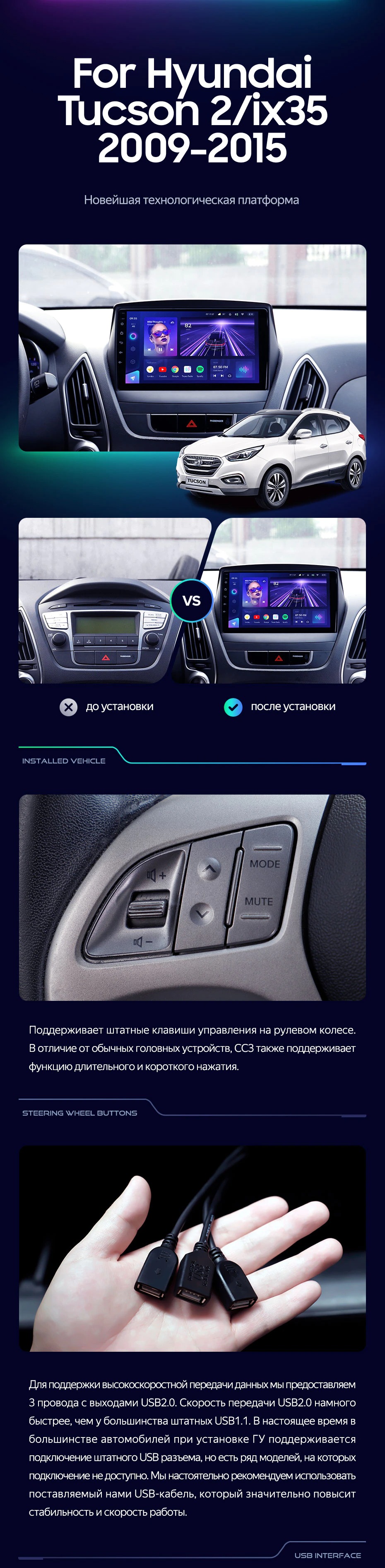 Штатная магнитола Teyes CC3 2K 360 6/128 Hyundai ix35 (2009-2015) (Tucson 2) Тип-AB (13") - купить всего за 62 100 руб. в интернет-магазине в Тюмени Teyes.com.ru. ✓ Самый лучший выбор мультимедиа ✓ Лучшая замена штатному ГУ ✓ Тел. +7 (800) 775-31-74