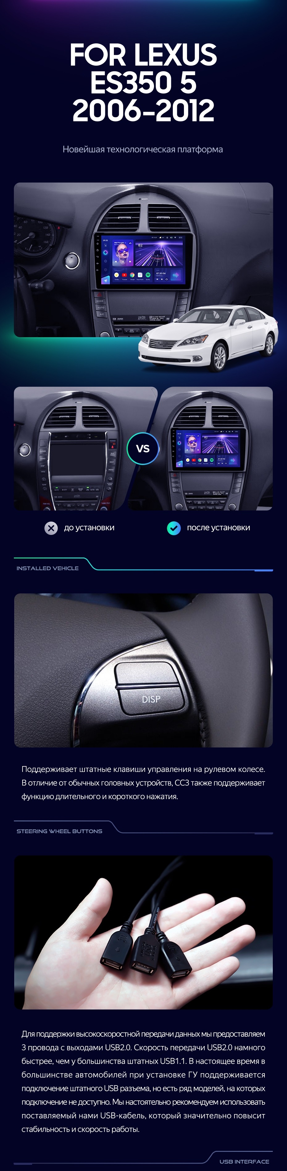 Штатная магнитола Teyes CC3 2K 360 6/128 Lexus ES350 5 V XV40 (2006-2012) Тип-C - купить всего за 62 710 руб. в интернет-магазине в Тюмени Teyes.com.ru. ✓ Самый лучший выбор мультимедиа ✓ Лучшая замена штатному ГУ ✓ Тел. +7 (800) 775-31-74