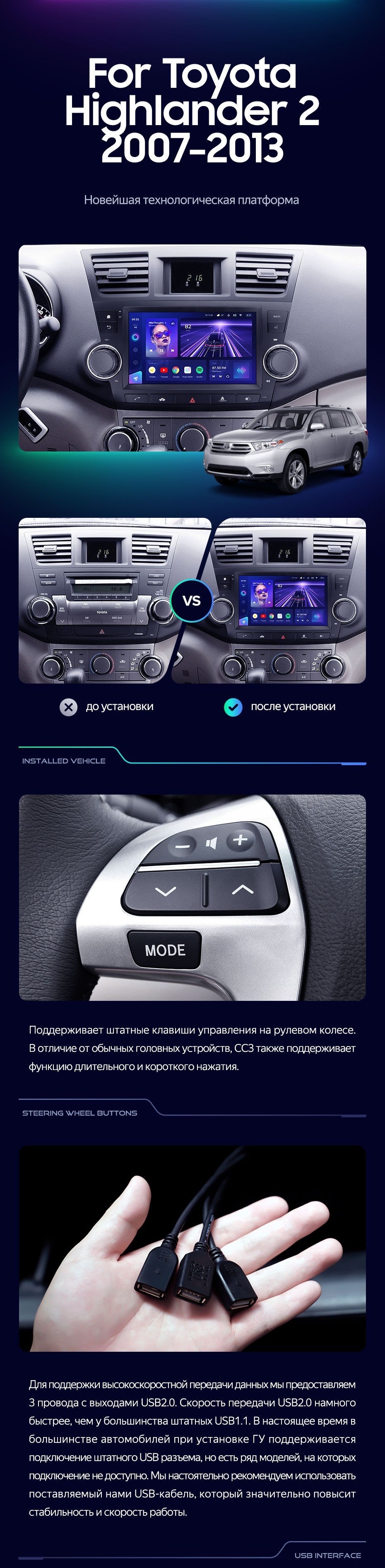 Штатная магнитола Teyes CC3 2K 360 6/128 Toyota Highlander 2 XU40 (2007-2013) F3 9" - купить всего за 61 910 руб. в интернет-магазине в Тюмени Teyes.com.ru. ✓ Самый лучший выбор мультимедиа ✓ Лучшая замена штатному ГУ ✓ Тел. +7 (800) 775-31-74