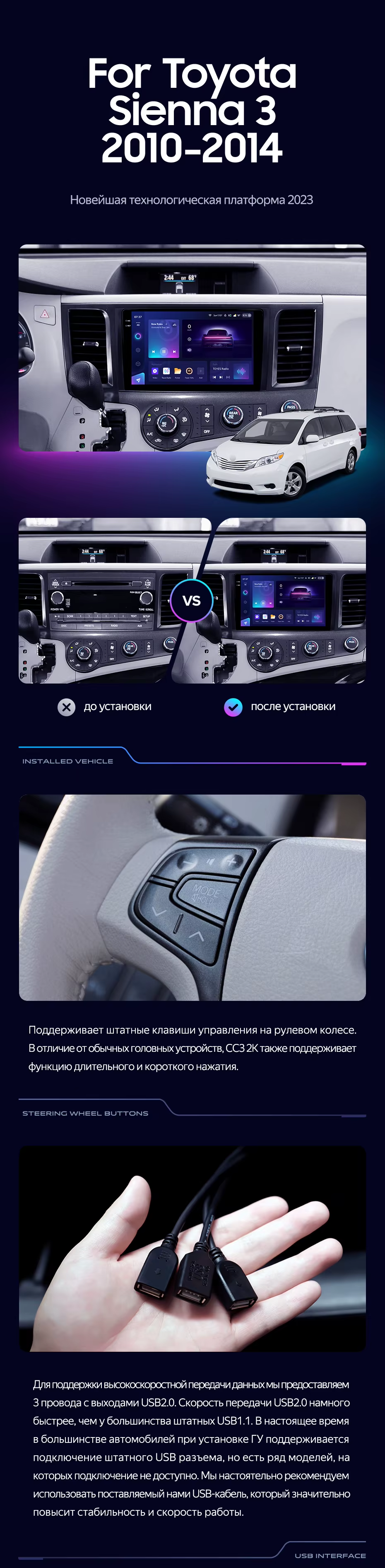 Штатная магнитола Teyes CC3 2K 360 6/128 Toyota Sienna 3 XL30 (2010-2014) - купить всего за 62 710 руб. в интернет-магазине в Тюмени Teyes.com.ru. ✓ Самый лучший выбор мультимедиа ✓ Лучшая замена штатному ГУ ✓ Тел. +7 (800) 775-31-74