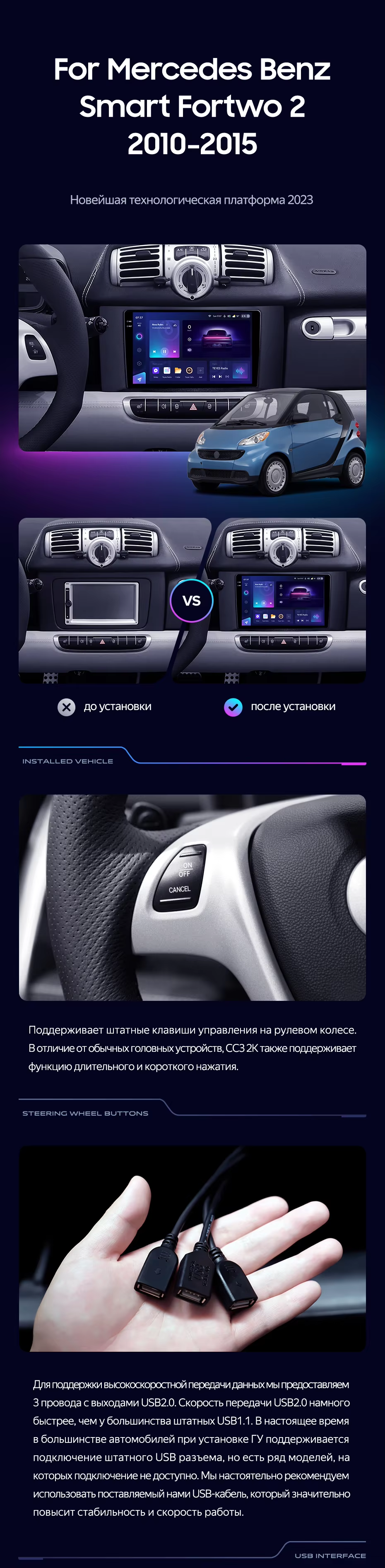 Штатная магнитола Teyes CC3 2K 4/32 Mercedes-Benz Smart Fortwo 2 (2010-2015) F1 - купить всего за 43 800 руб. в интернет-магазине в Тюмени Teyes.com.ru. ✓ Самый лучший выбор мультимедиа ✓ Лучшая замена штатному ГУ ✓ Тел. +7 (800) 775-31-74
