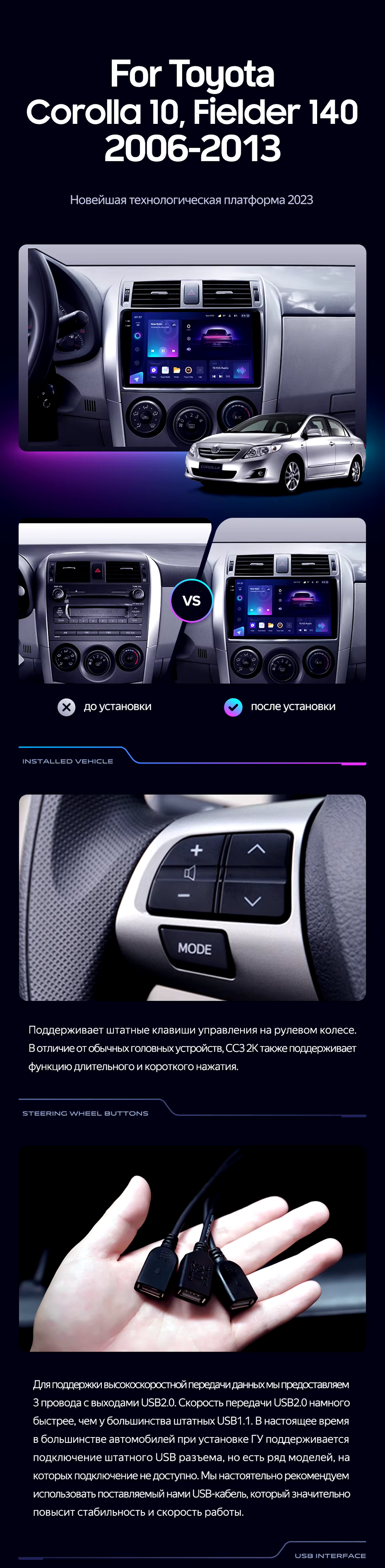 Штатная магнитола Teyes CC3 2K 4/32 Toyota Corolla Fielder 140 (2006-2013) Тип-B (13") - купить всего за 46 700 руб. в интернет-магазине в Тюмени Teyes.com.ru. ✓ Самый лучший выбор мультимедиа ✓ Лучшая замена штатному ГУ ✓ Тел. +7 (800) 775-31-74