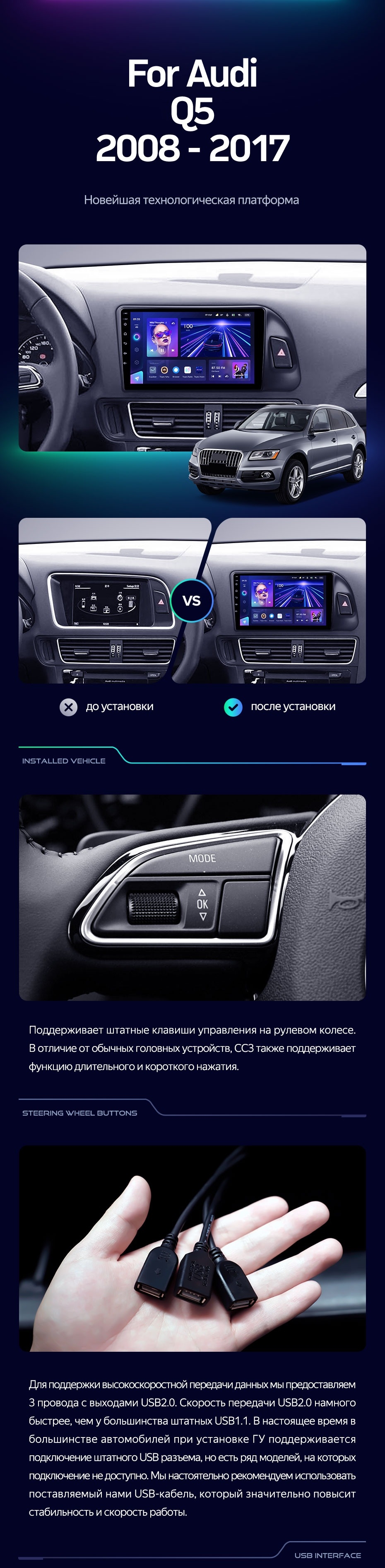 Штатная магнитола Teyes CC3 2K 4/64 Audi Q5 8R (2008-2017) Тип-A (13") - купить всего за 54 950 руб. в интернет-магазине в Тюмени Teyes.com.ru. ✓ Самый лучший выбор мультимедиа ✓ Лучшая замена штатному ГУ ✓ Тел. +7 (800) 775-31-74