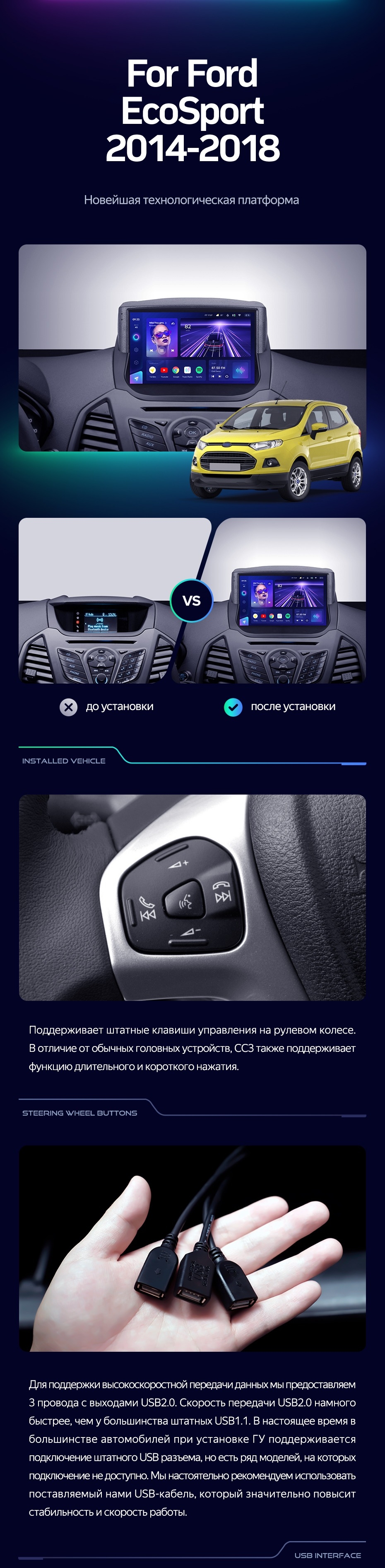 Штатная магнитола Teyes CC3 4/32 Ford EcoSport (2014-2018) - купить всего за 38 300 руб. в интернет-магазине в Тюмени Teyes.com.ru. ✓ Самый лучший выбор мультимедиа ✓ Лучшая замена штатному ГУ ✓ Тел. +7 (800) 775-31-74