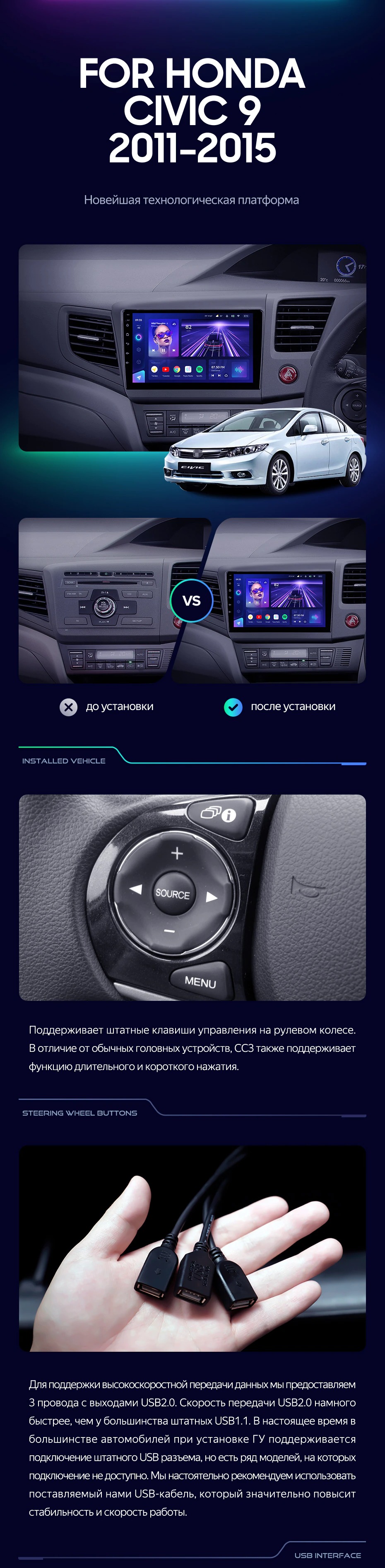 Штатная магнитола Teyes CC3 4/32 Honda Civic 9 FB FK FD (2011-2015) - купить всего за 39 190 руб. в интернет-магазине в Тюмени Teyes.com.ru. ✓ Самый лучший выбор мультимедиа ✓ Лучшая замена штатному ГУ ✓ Тел. +7 (800) 775-31-74