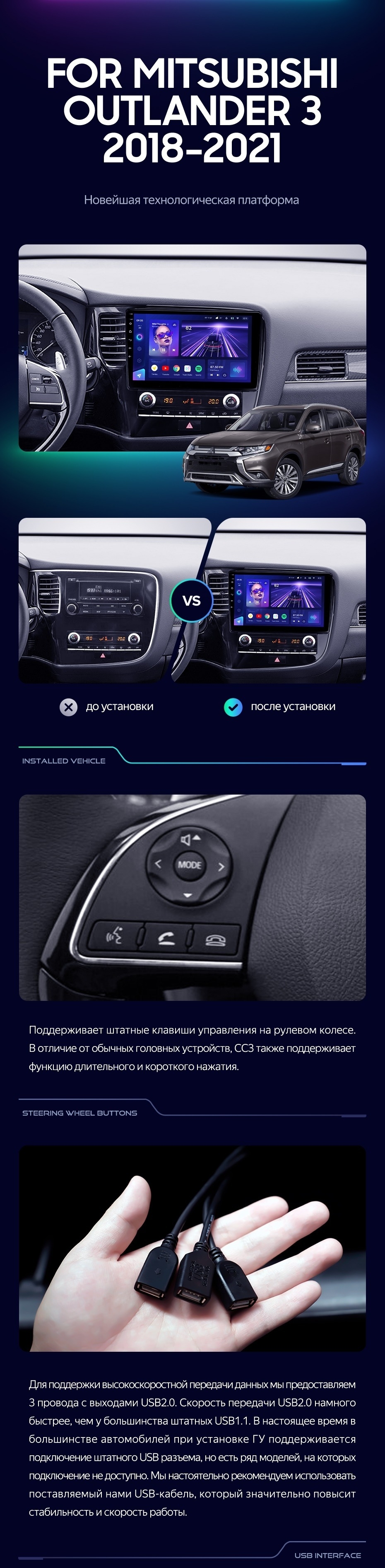 Штатная магнитола Teyes CC3 4/32 Mitsubishi Outlander 3 (2018-2021) - купить всего за 41 870 руб. в интернет-магазине в Тюмени Teyes.com.ru. ✓ Самый лучший выбор мультимедиа ✓ Лучшая замена штатному ГУ ✓ Тел. +7 (800) 775-31-74