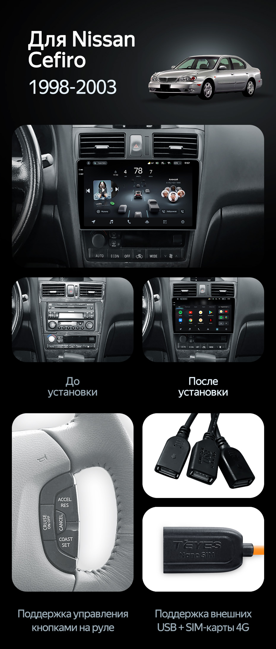 Штатная магнитола Teyes CC3 4/32 Nissan Cefiro 3 A33 (1998-2003) F2 - купить всего за 37 400 руб. в интернет-магазине в Тюмени Teyes.com.ru. ✓ Самый лучший выбор мультимедиа ✓ Лучшая замена штатному ГУ ✓ Тел. +7 (800) 775-31-74