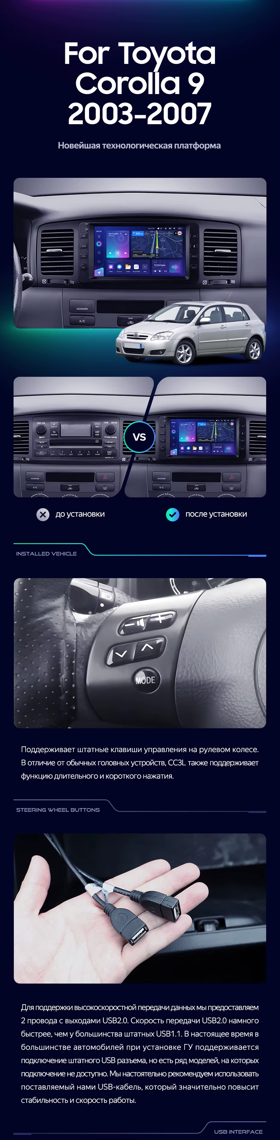 Штатная магнитола Teyes CC3 4/32 Toyota Corolla 9 E120 E130 (2003-2007) 7" - купить всего за 36 700 руб. в интернет-магазине в Тюмени Teyes.com.ru. ✓ Самый лучший выбор мультимедиа ✓ Лучшая замена штатному ГУ ✓ Тел. +7 (800) 775-31-74