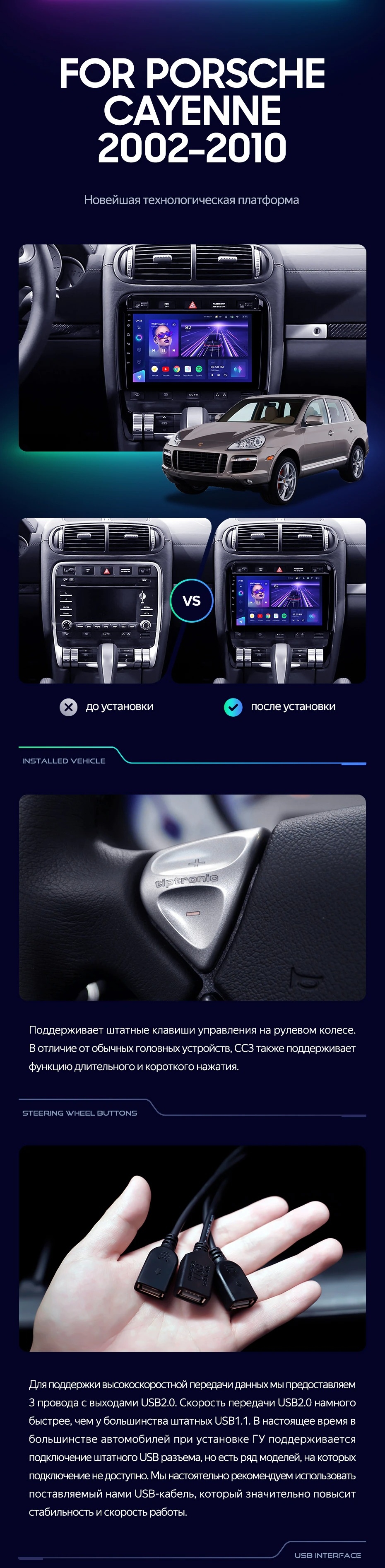 Штатная магнитола Teyes CC3 6/128 Porsche Cayenne I 1 9PA (2002-2010) - купить всего за 44 900 руб. в интернет-магазине в Тюмени Teyes.com.ru. ✓ Самый лучший выбор мультимедиа ✓ Лучшая замена штатному ГУ ✓ Тел. +7 (800) 775-31-74