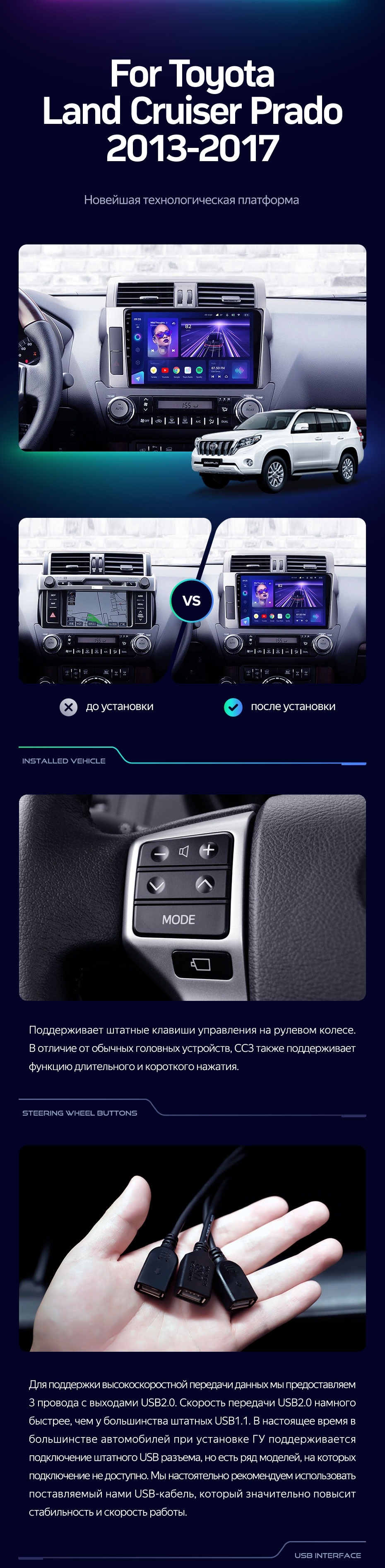 Штатная магнитола Teyes CC3 6/128 Toyota Land Cruiser Prado 150 (2013-2017) - купить всего за 46 000 руб. в интернет-магазине в Тюмени Teyes.com.ru. ✓ Самый лучший выбор мультимедиа ✓ Лучшая замена штатному ГУ ✓ Тел. +7 (800) 775-31-74