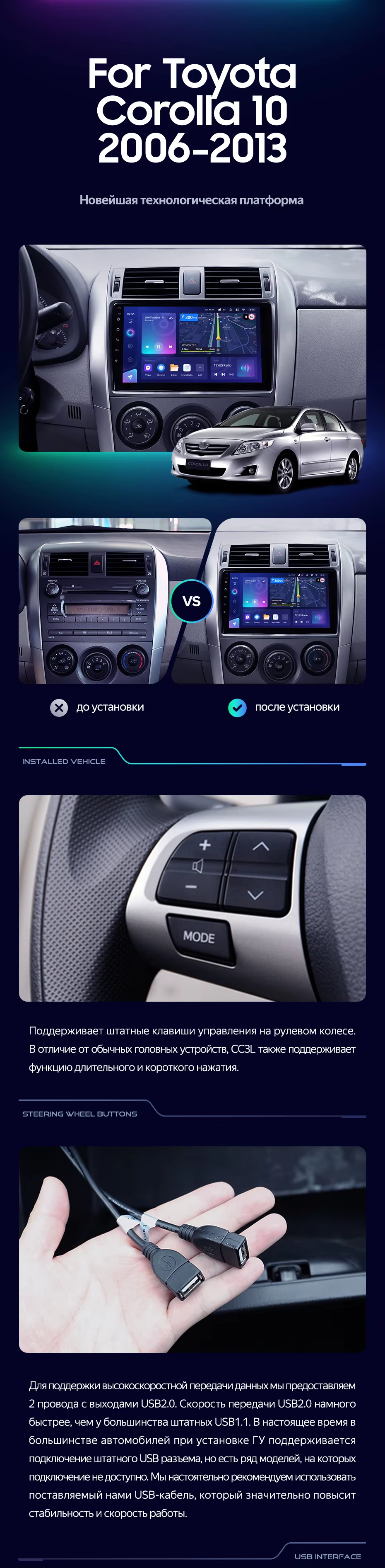 Штатная магнитола Teyes CC3L 4/32 Toyota Corolla 10 E140 E150 (2006-2013) Тип-B - купить всего за 25 000 руб. в интернет-магазине в Тюмени Teyes.com.ru. ✓ Самый лучший выбор мультимедиа ✓ Лучшая замена штатному ГУ ✓ Тел. +7 (800) 775-31-74