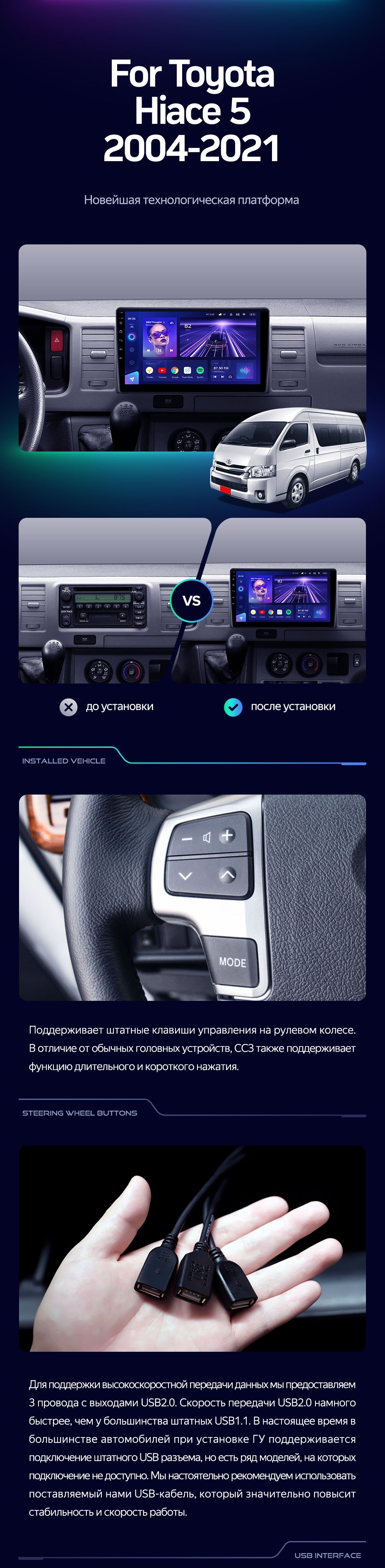 Штатная магнитола Teyes CC3L 4/32 Toyota Hiace XH10 H200 (2004-2021) - купить всего за 26 630 руб. в интернет-магазине в Тюмени Teyes.com.ru. ✓ Самый лучший выбор мультимедиа ✓ Лучшая замена штатному ГУ ✓ Тел. +7 (800) 775-31-74