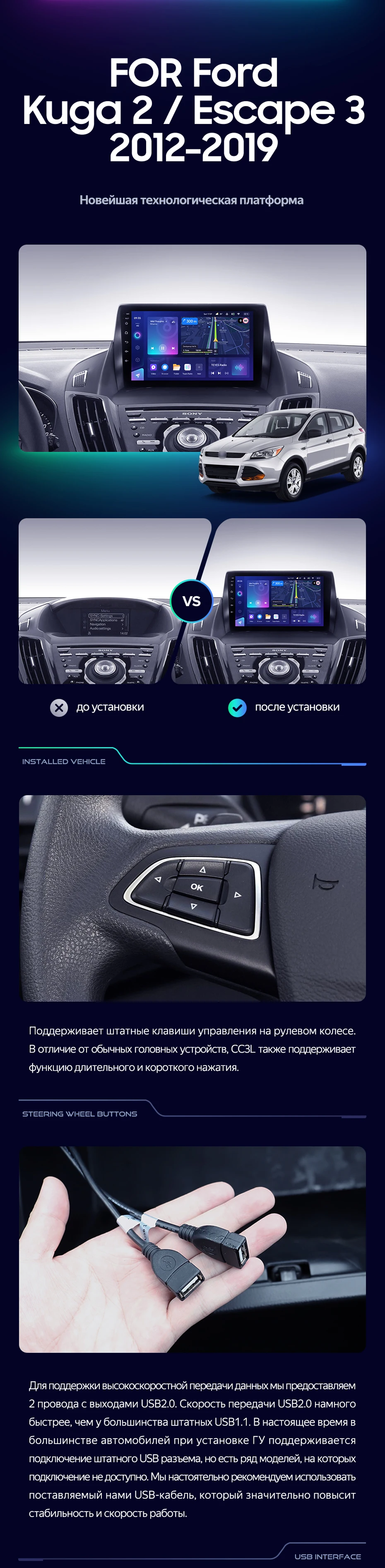 Штатная магнитола Teyes CC3L 4/64 Ford Escape 3 (2012-2019) Тип-A - купить всего за 31 500 руб. в интернет-магазине в Тюмени Teyes.com.ru. ✓ Самый лучший выбор мультимедиа ✓ Лучшая замена штатному ГУ ✓ Тел. +7 (800) 775-31-74