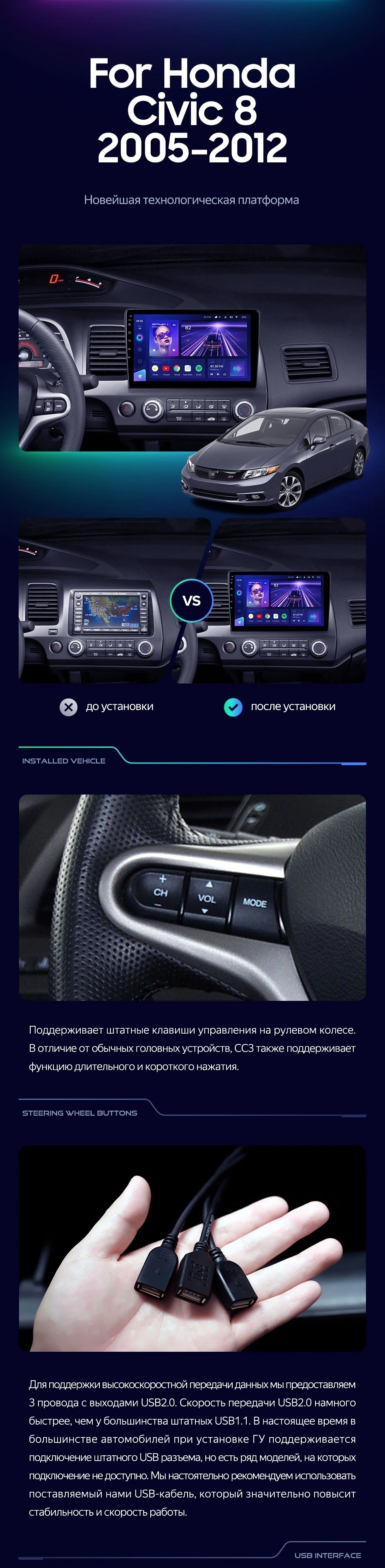 Штатная магнитола Teyes CC3L WiFi 2/32 Honda Civic 8 FK FN FD (2005-2012) - купить всего за 19 200 руб. в интернет-магазине в Тюмени Teyes.com.ru. ✓ Самый лучший выбор мультимедиа ✓ Лучшая замена штатному ГУ ✓ Тел. +7 (800) 775-31-74