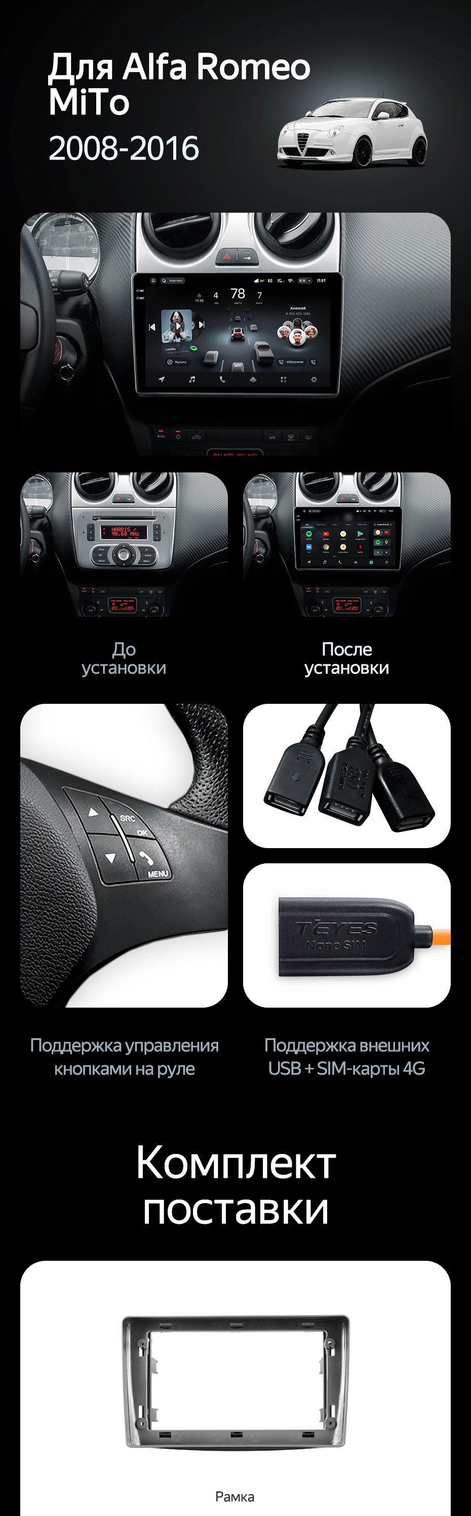 Штатная магнитола Teyes CC4 6/64 Alfa Romeo MiTo 955 (2008-2016) - купить всего за 46 500 руб. в интернет-магазине в Тюмени Teyes.com.ru. ✓ Самый лучший выбор мультимедиа ✓ Лучшая замена штатному ГУ ✓ Тел. +7 (800) 775-31-74