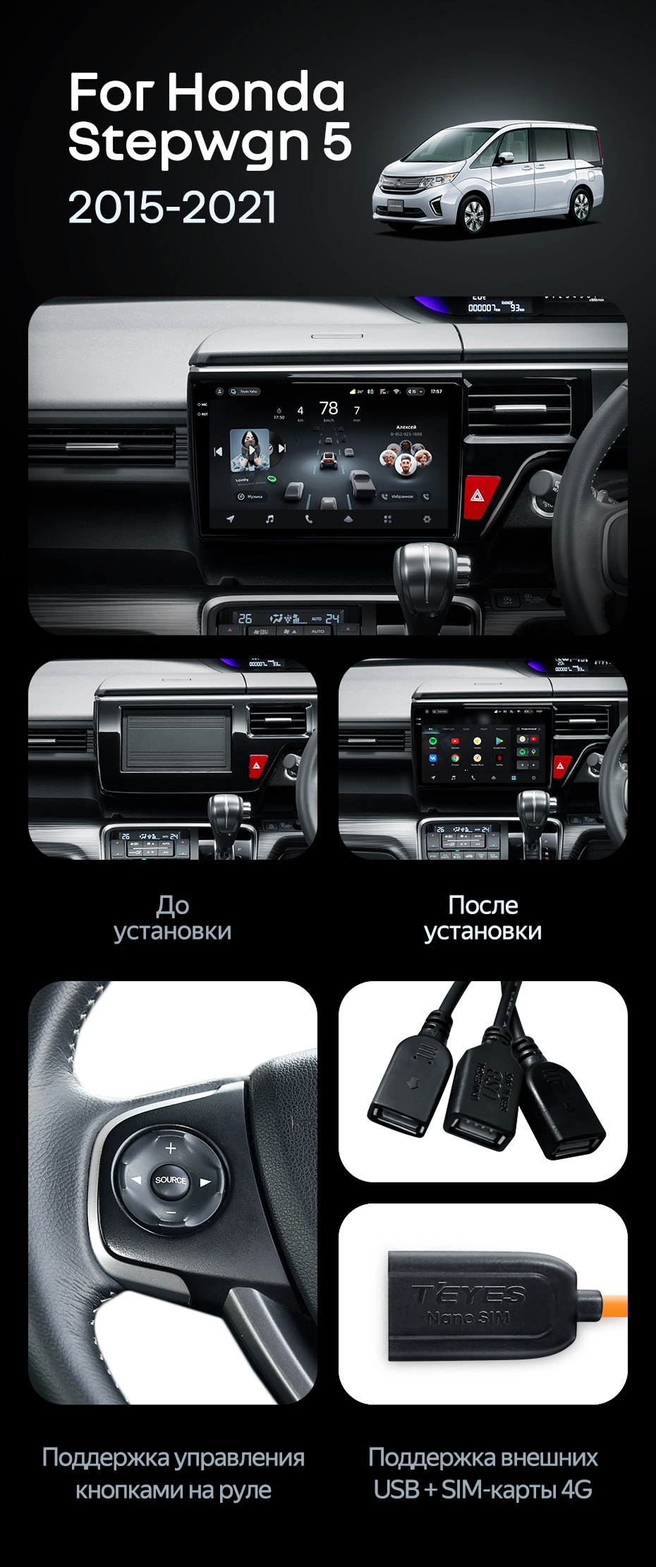 Штатная магнитола Teyes CC4 Pro 12/256 Honda Stepwgn 5 (2015-2021) правый руль - купить всего за 74 900 руб. в интернет-магазине в Тюмени Teyes.com.ru. ✓ Самый лучший выбор мультимедиа ✓ Лучшая замена штатному ГУ ✓ Тел. +7 (800) 775-31-74