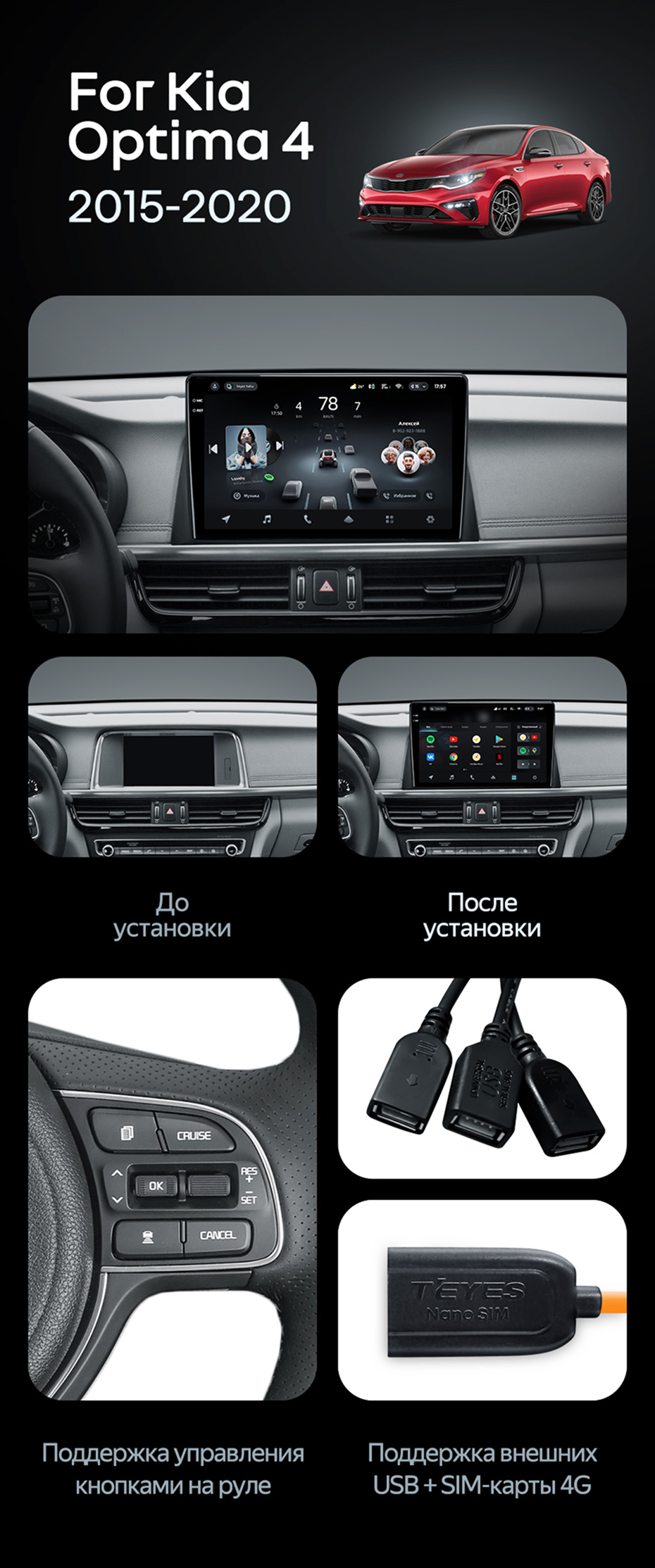 Штатная магнитола Teyes CC4 Pro 12/256 Kia Optima 4 JF (2015-2020) Тип-B - купить всего за 74 960 руб. в интернет-магазине в Тюмени Teyes.com.ru. ✓ Самый лучший выбор мультимедиа ✓ Лучшая замена штатному ГУ ✓ Тел. +7 (800) 775-31-74