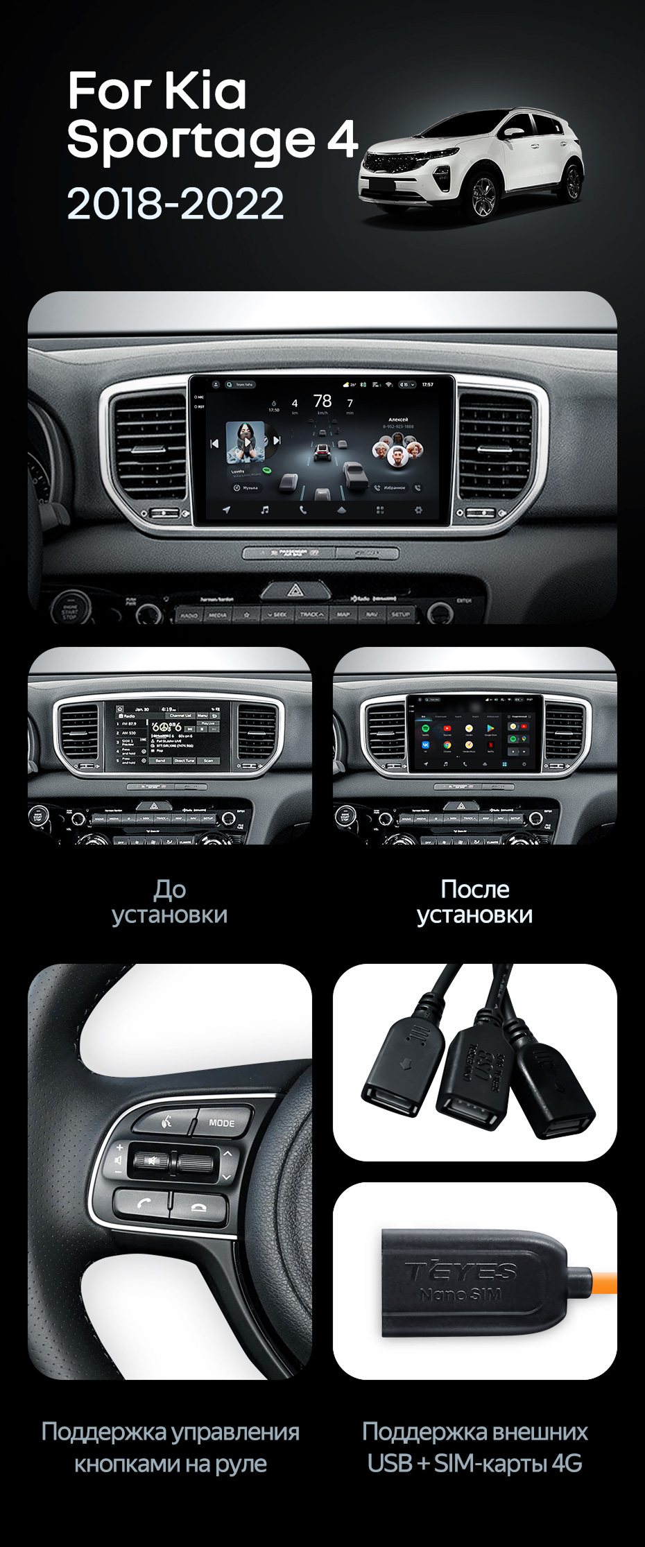 Штатная магнитола Teyes CC4 Pro 12/256 Kia Sportage 4 QL (2018-2022) Тип-A - купить всего за 74 582 руб. в интернет-магазине в Тюмени Teyes.com.ru. ✓ Самый лучший выбор мультимедиа ✓ Лучшая замена штатному ГУ ✓ Тел. +7 (800) 775-31-74