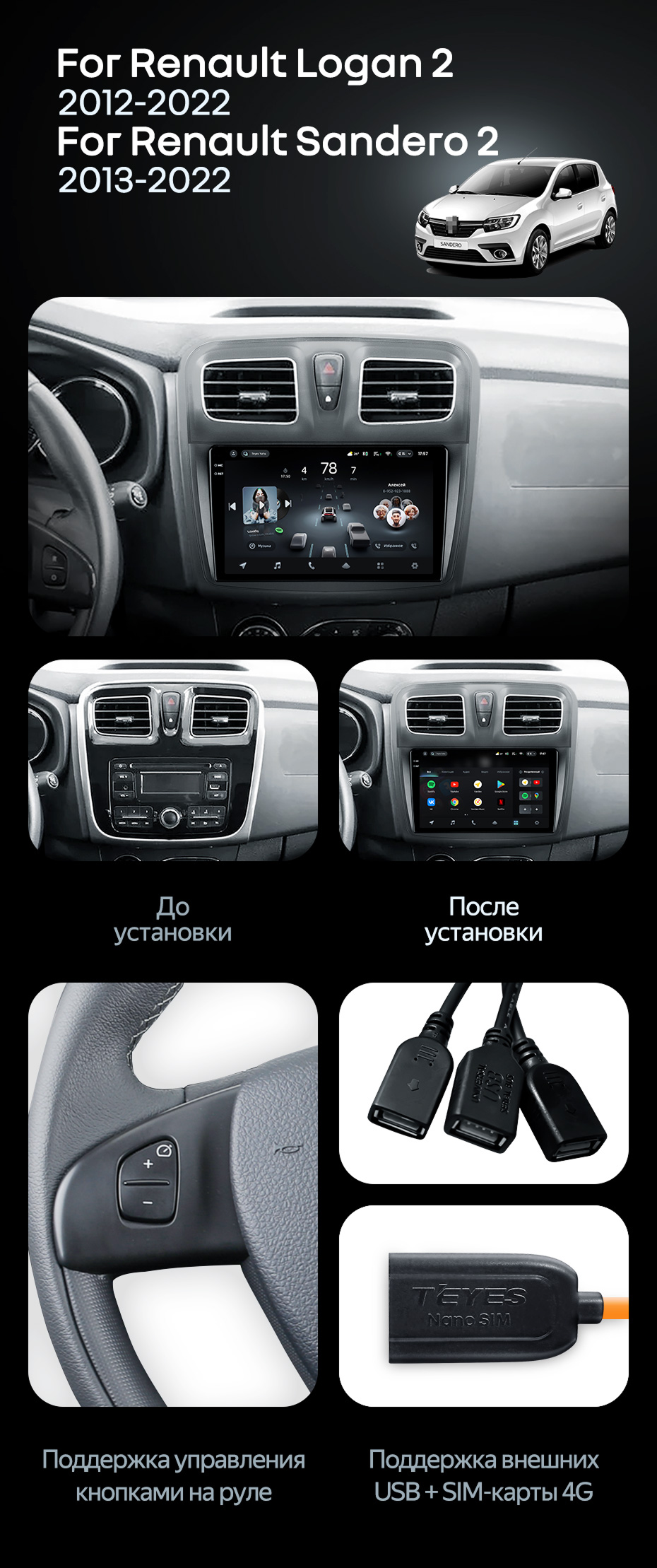 Штатная магнитола Teyes CC4 Pro 12/256 Renault Logan 2 (2012-2022) F2 - купить всего за 74 582 руб. в интернет-магазине в Тюмени Teyes.com.ru. ✓ Самый лучший выбор мультимедиа ✓ Лучшая замена штатному ГУ ✓ Тел. +7 (800) 775-31-74