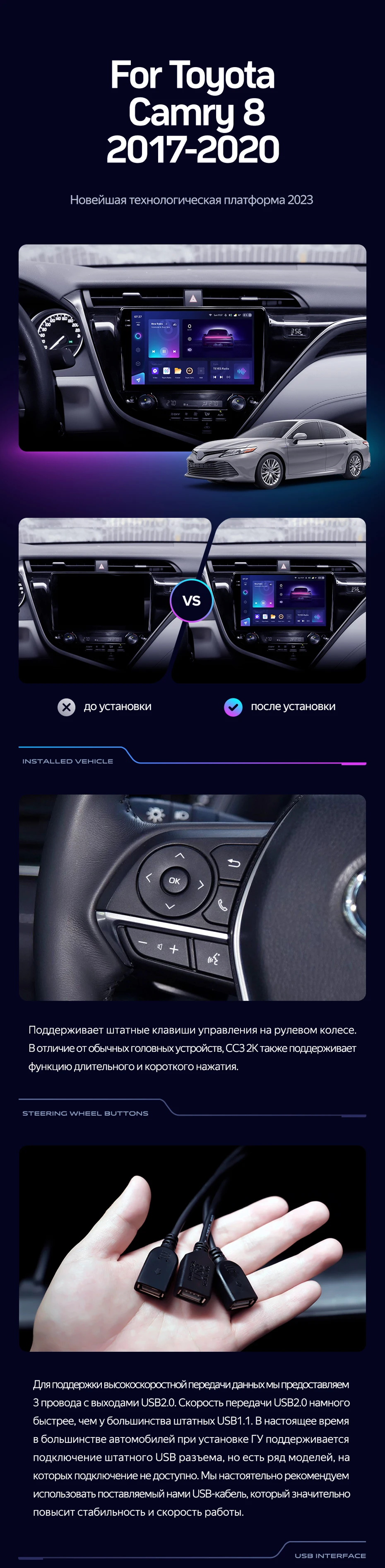 Штатная магнитола Teyes CC4 Pro 12/256 Toyota Camry 8 XV 70 (2017-2020) Правый руль - купить всего за 74 560 руб. в интернет-магазине в Тюмени Teyes.com.ru. ✓ Самый лучший выбор мультимедиа ✓ Лучшая замена штатному ГУ ✓ Тел. +7 (800) 775-31-74