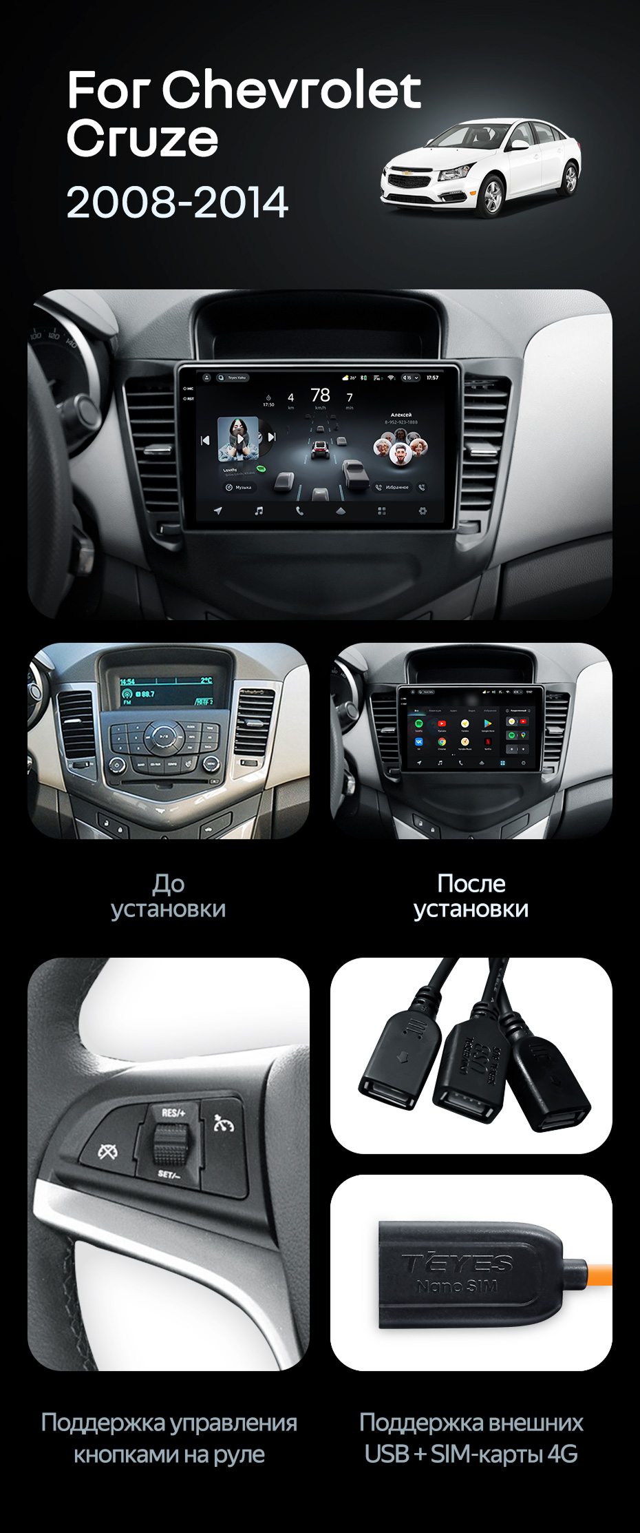 Штатная магнитола Teyes CC4 Pro 8/128 Chevrolet Cruze J300 (2008-2014) - купить всего за 64 470 руб. в интернет-магазине в Тюмени Teyes.com.ru. ✓ Самый лучший выбор мультимедиа ✓ Лучшая замена штатному ГУ ✓ Тел. +7 (800) 775-31-74