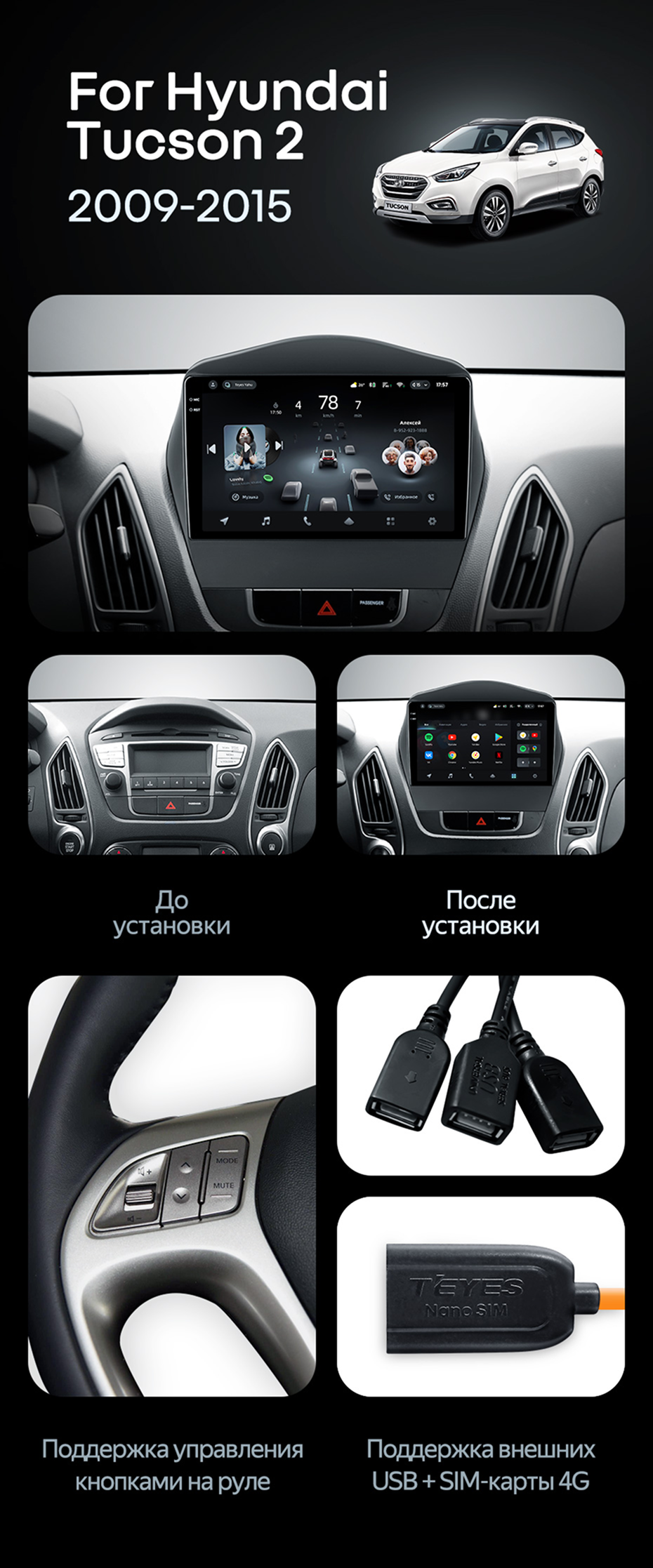 Штатная магнитола Teyes CC4 Pro 8/128 Hyundai ix35 (2009-2015) (Tucson 2) Тип-C - купить всего за 65 170 руб. в интернет-магазине в Тюмени Teyes.com.ru. ✓ Самый лучший выбор мультимедиа ✓ Лучшая замена штатному ГУ ✓ Тел. +7 (800) 775-31-74