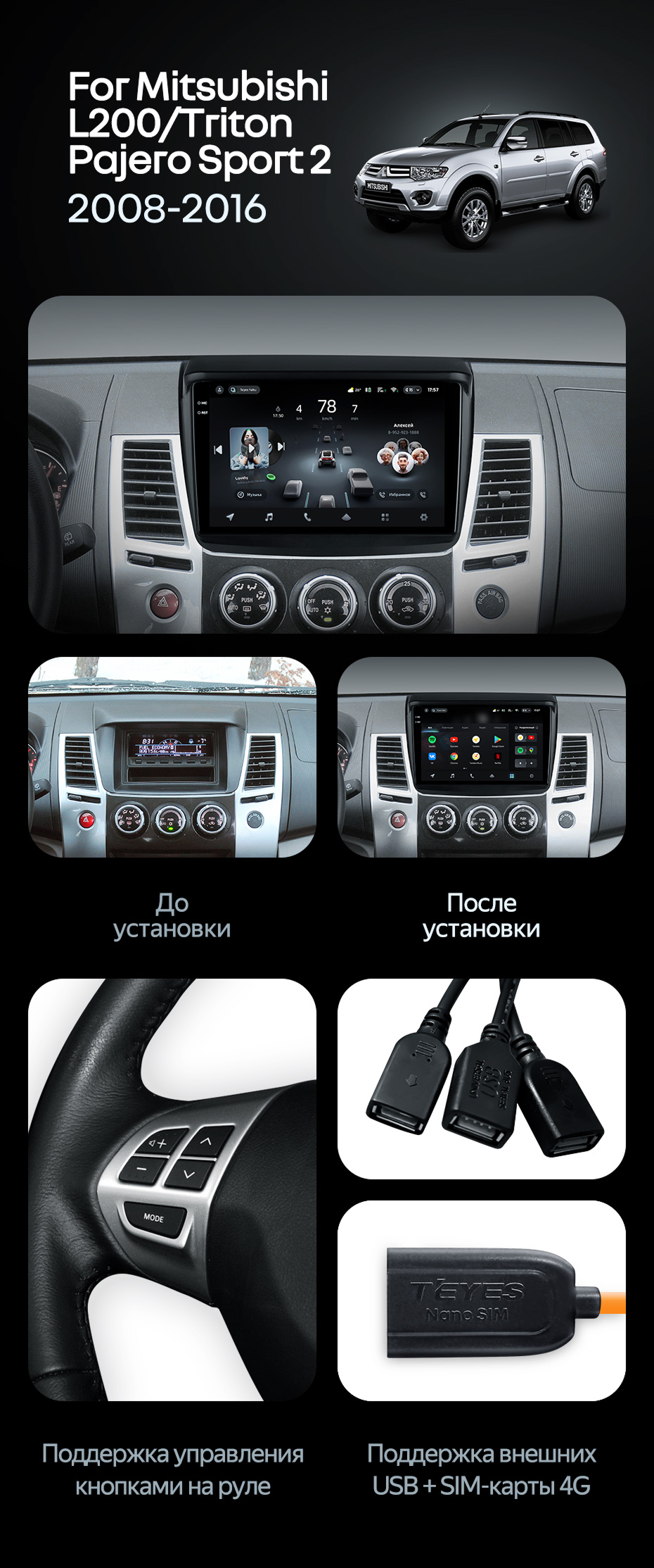 Штатная магнитола Teyes CC4 Pro 8/128 Mitsubishi L200 (2008-2016) - купить всего за 63 870 руб. в интернет-магазине в Тюмени Teyes.com.ru. ✓ Самый лучший выбор мультимедиа ✓ Лучшая замена штатному ГУ ✓ Тел. +7 (800) 775-31-74