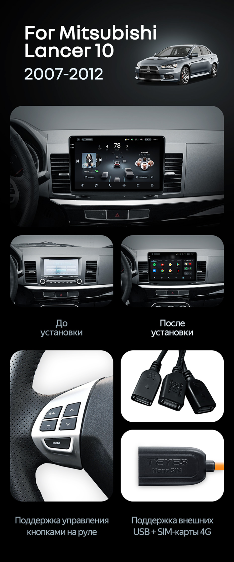 Штатная магнитола Teyes CC4 Pro 8/128 Mitsubishi Lancer 10 CY (2007-2012) Тип-B - купить всего за 65 460 руб. в интернет-магазине в Тюмени Teyes.com.ru. ✓ Самый лучший выбор мультимедиа ✓ Лучшая замена штатному ГУ ✓ Тел. +7 (800) 775-31-74
