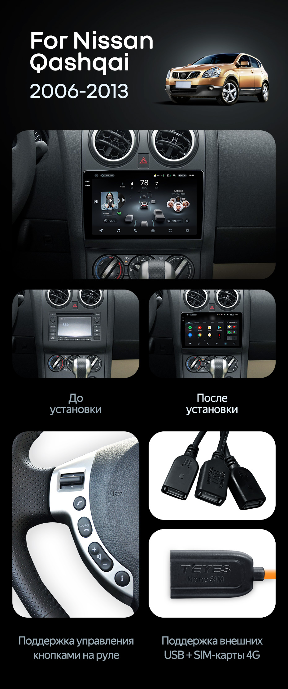 Штатная магнитола Teyes CC4 Pro 8/128 Nissan Qashqai 1 J10 (2006-2013) F1 - купить всего за 64 635 руб. в интернет-магазине в Тюмени Teyes.com.ru. ✓ Самый лучший выбор мультимедиа ✓ Лучшая замена штатному ГУ ✓ Тел. +7 (800) 775-31-74