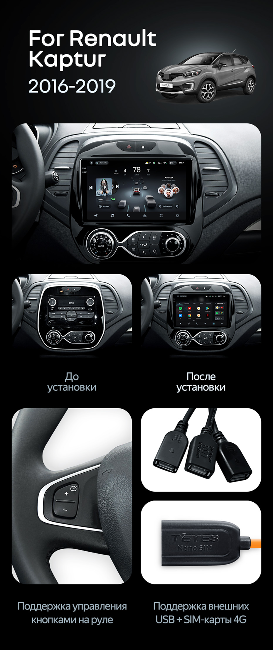 Штатная магнитола Teyes CC4 Pro 8/128 Renault Kaptur (2016-2019) F1 - купить всего за 66 090 руб. в интернет-магазине в Тюмени Teyes.com.ru. ✓ Самый лучший выбор мультимедиа ✓ Лучшая замена штатному ГУ ✓ Тел. +7 (800) 775-31-74