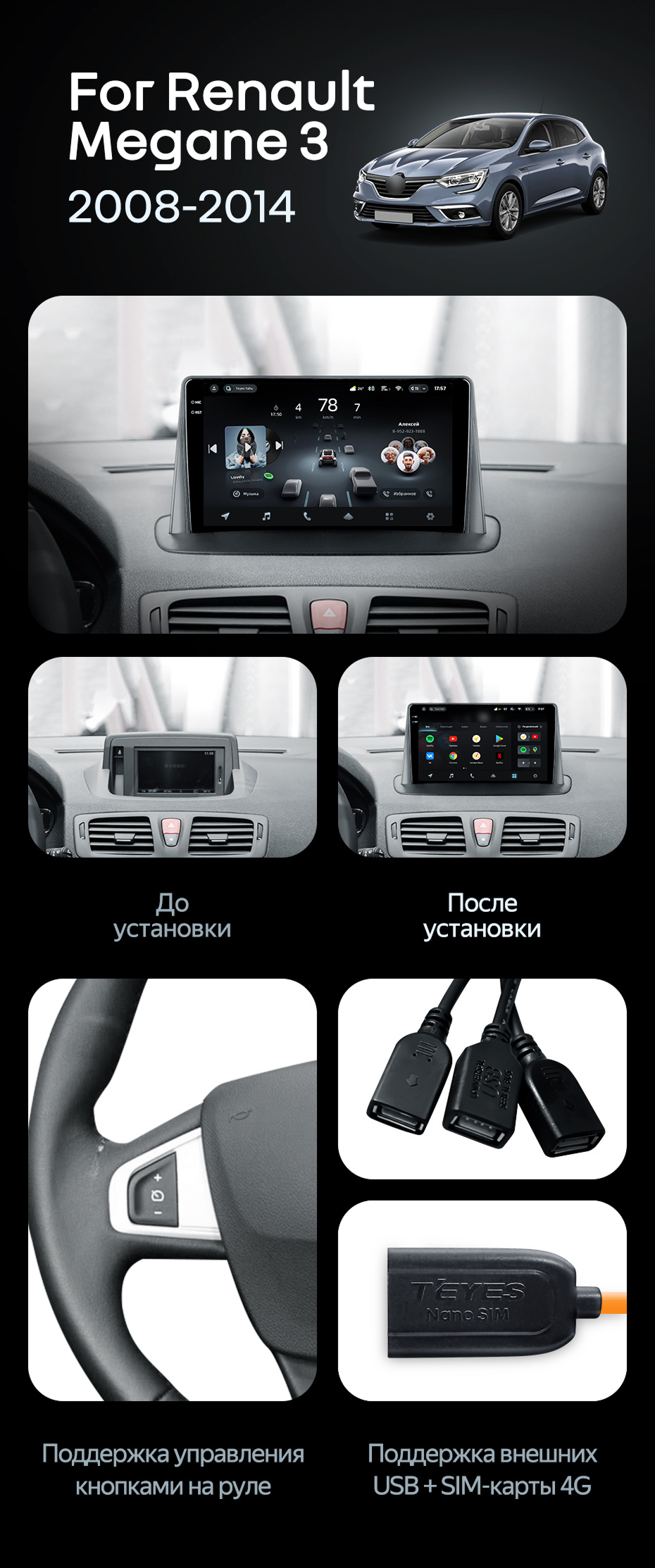 Штатная магнитола Teyes CC4 Pro 8/128 Renault Megane 3 (2008-2014) - купить всего за 60 050 руб. в интернет-магазине в Тюмени Teyes.com.ru. ✓ Самый лучший выбор мультимедиа ✓ Лучшая замена штатному ГУ ✓ Тел. +7 (800) 775-31-74