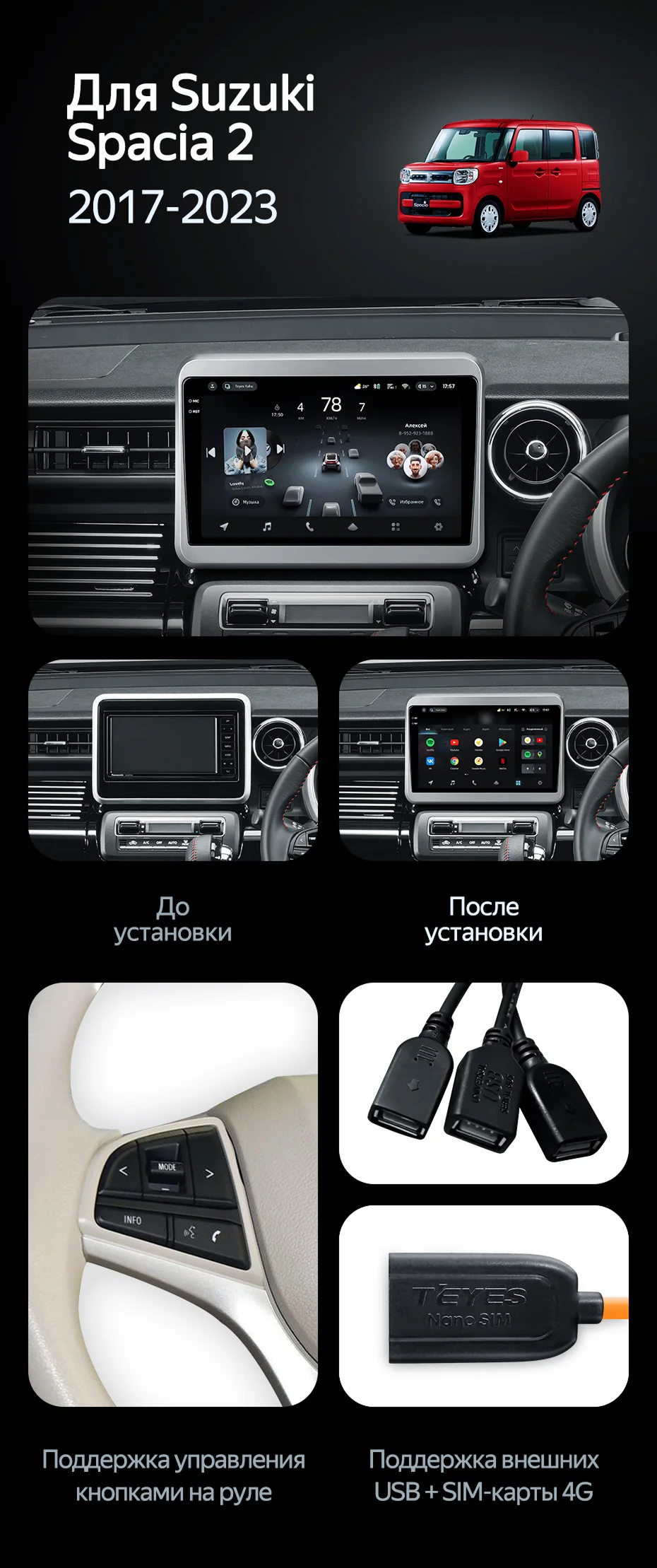 Штатная магнитола Teyes CC4 Pro 8/128 Suzuki Spacia 2 (2017-2023) - купить всего за 64 270 руб. в интернет-магазине в Тюмени Teyes.com.ru. ✓ Самый лучший выбор мультимедиа ✓ Лучшая замена штатному ГУ ✓ Тел. +7 (800) 775-31-74