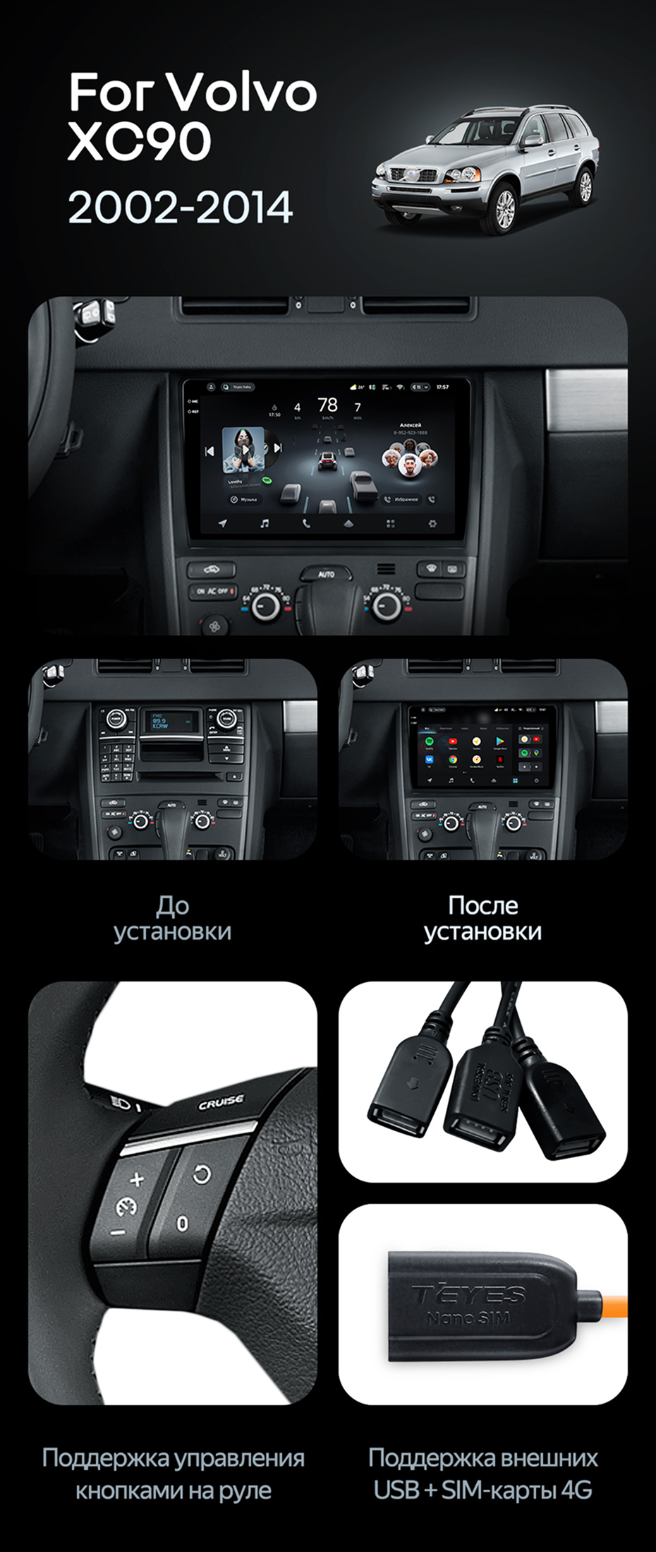 Штатная магнитола Teyes CC4 Pro 8/128 Volvo XC90 (2007-2014) F2 (комплект для установки нижней части) - купить всего за 69 000 руб. в интернет-магазине в Тюмени Teyes.com.ru. ✓ Самый лучший выбор мультимедиа ✓ Лучшая замена штатному ГУ ✓ Тел. +7 (800) 775-31-74
