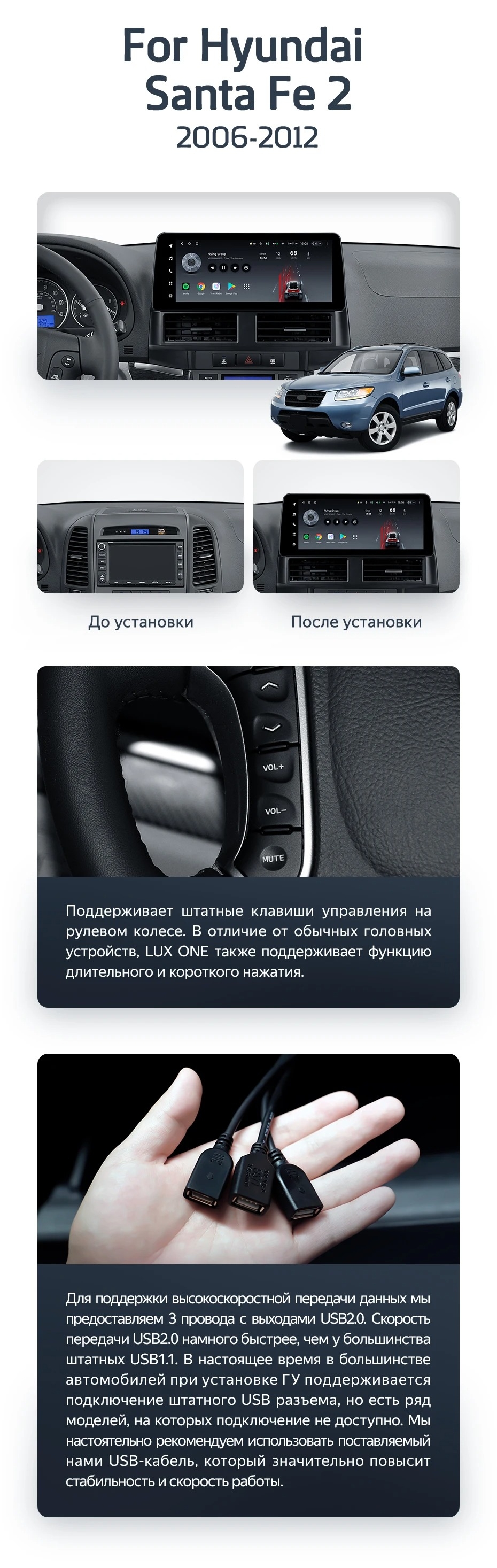 Штатная магнитола Teyes LUX ONE 360 6/128 Hyundai Santa Fe 2 (2006-2012) - купить всего за 74 400 руб. в интернет-магазине в Тюмени Teyes.com.ru. ✓ Самый лучший выбор мультимедиа ✓ Лучшая замена штатному ГУ ✓ Тел. +7 (800) 775-31-74