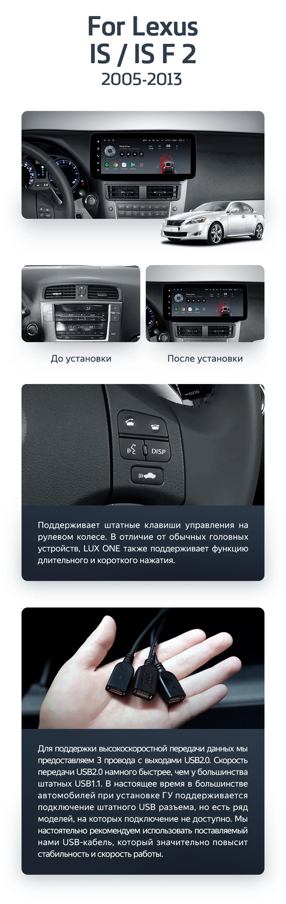 Штатная магнитола Teyes LUX ONE 360 6/128 Lexus IS F 200D 220D 250 250C 300 350 350C 2 XE20 (2005-2013) - купить всего за 79 100 руб. в интернет-магазине в Тюмени Teyes.com.ru. ✓ Самый лучший выбор мультимедиа ✓ Лучшая замена штатному ГУ ✓ Тел. +7 (800) 775-31-74