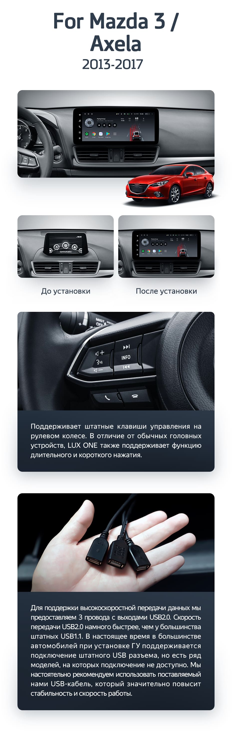 Штатная магнитола Teyes LUX ONE 360 6/128 Mazda Axela 3 (2013-2017) Тип-A Правый руль - купить всего за 70 400 руб. в интернет-магазине в Тюмени Teyes.com.ru. ✓ Самый лучший выбор мультимедиа ✓ Лучшая замена штатному ГУ ✓ Тел. +7 (800) 775-31-74