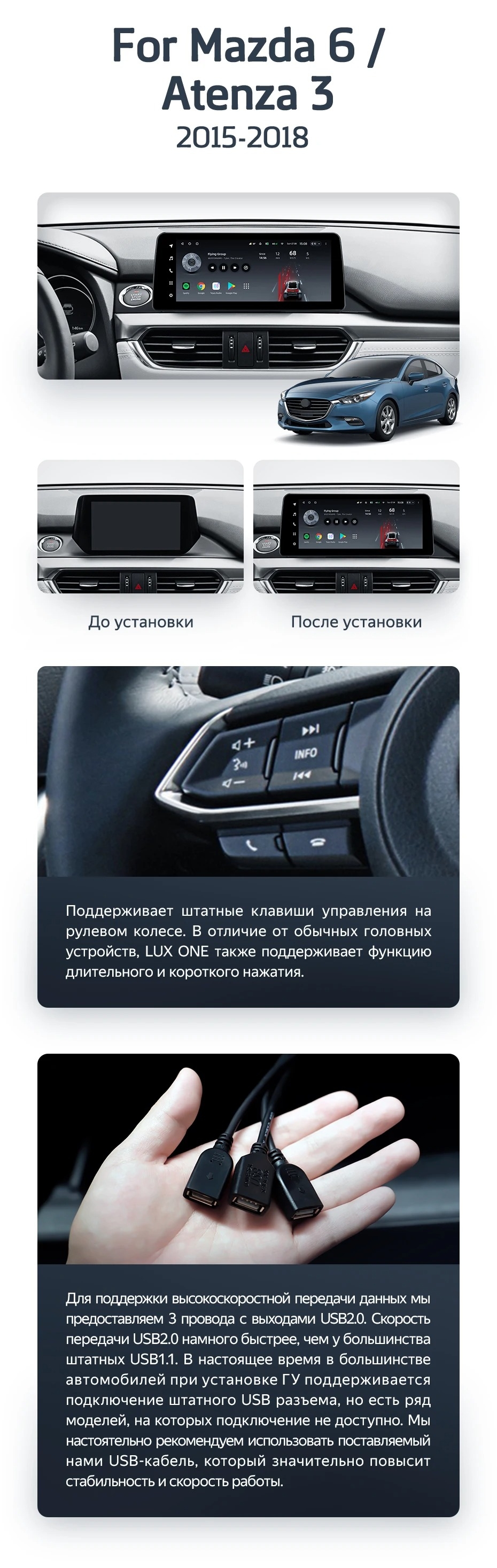 Штатная магнитола Teyes LUX ONE 6/128 Mazda 6 GJ GL (2015-2018) Тип-A - купить всего за 46 200 руб. в интернет-магазине в Тюмени Teyes.com.ru. ✓ Самый лучший выбор мультимедиа ✓ Лучшая замена штатному ГУ ✓ Тел. +7 (800) 775-31-74