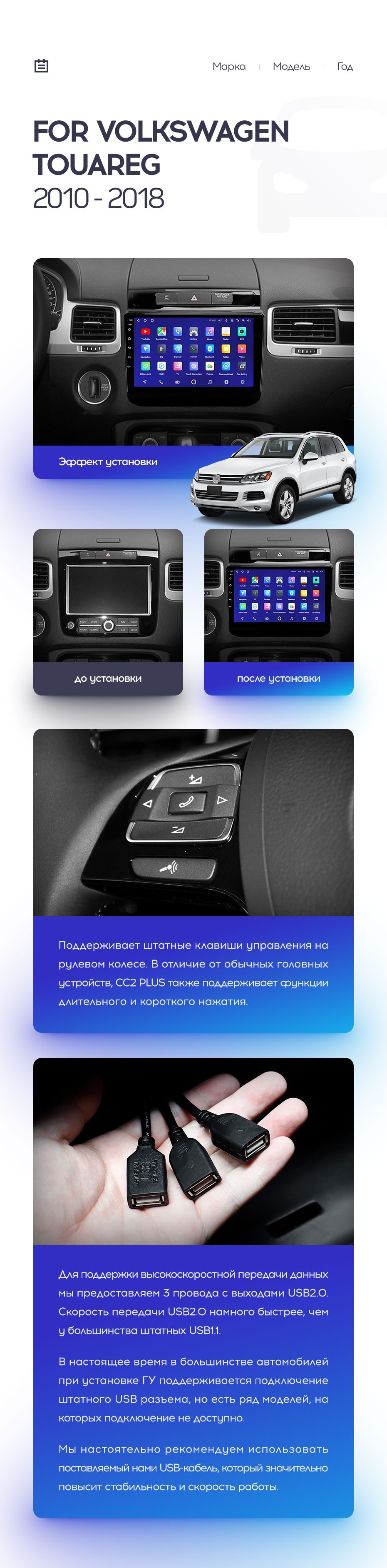 Полный комплект установки магнитолы Teyes с рамкой и проводкой можно выбрать в каталоге штатных магнитол Volkswagen Touareg FL NF (2010-2018).